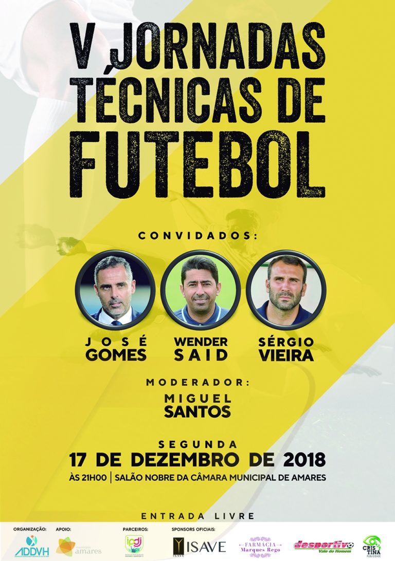 Wender, treinador do SC Braga B, José Gomes, técnico do Rio Ave e Sérgio Vieira, treinador do Famalicão são os convidados da Associação Desenvolvimento Desportivo do Vale do Homem (ADDVH) para as V Jornadas Técnicas de Futebol.