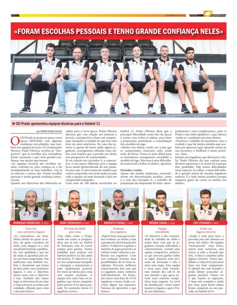 Conheça os treinadores da formação do GD Prado