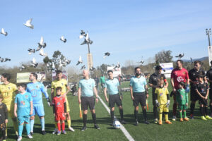 No mesmo momento, o público presente assistiu a uma largada de pombos, cedidos por Filipe Carneiro, encerrando simbolicamente a cerimónia pré-jogo.