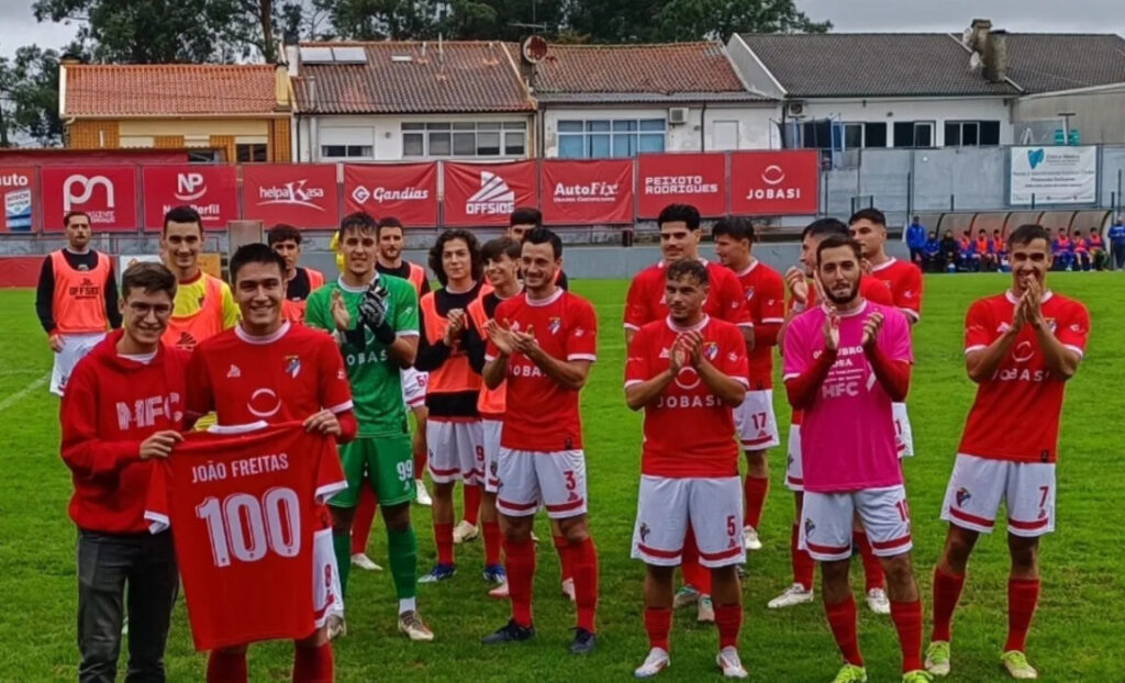 O Merelinense homenageou, ontem, antes do jogo com o Marinhas, João Freitas pelos 100 jogos ao serviço do clube bracarense na equipa sénior.