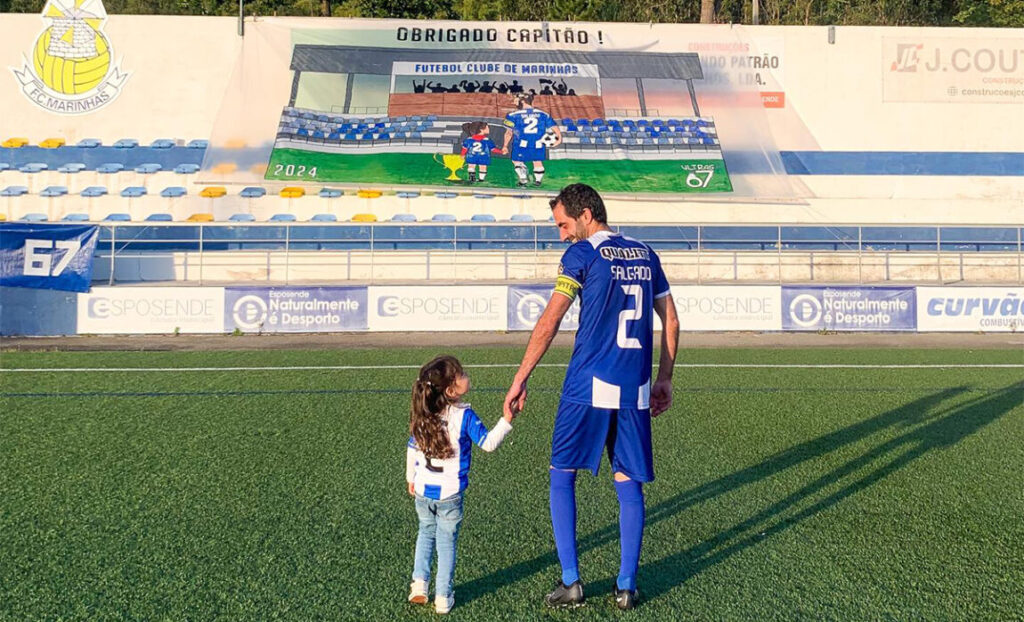 Salgado, agora acaba a magia do toque na bola, do cruzamento letal, do corte oportuno, da liderança no campo, da voz firme no balneário, das palavras nas palestras. Dos conselhos a quem chega de novo. Mas o caminho nem sequer vai a meio. Por tudo o que deste e por tudo o que tens haverá sempre um Salgado presente em nós.