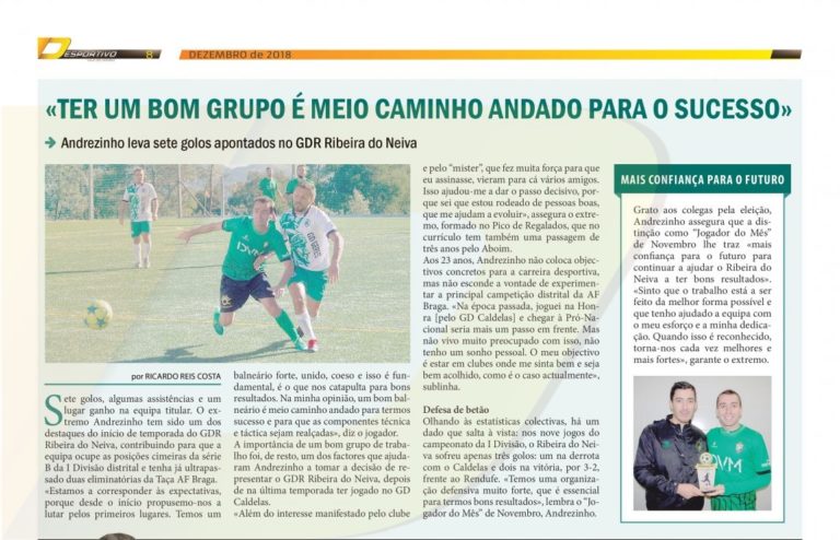 Andrezinho foi o Jogador do Mês do Ribeira do Neiva
